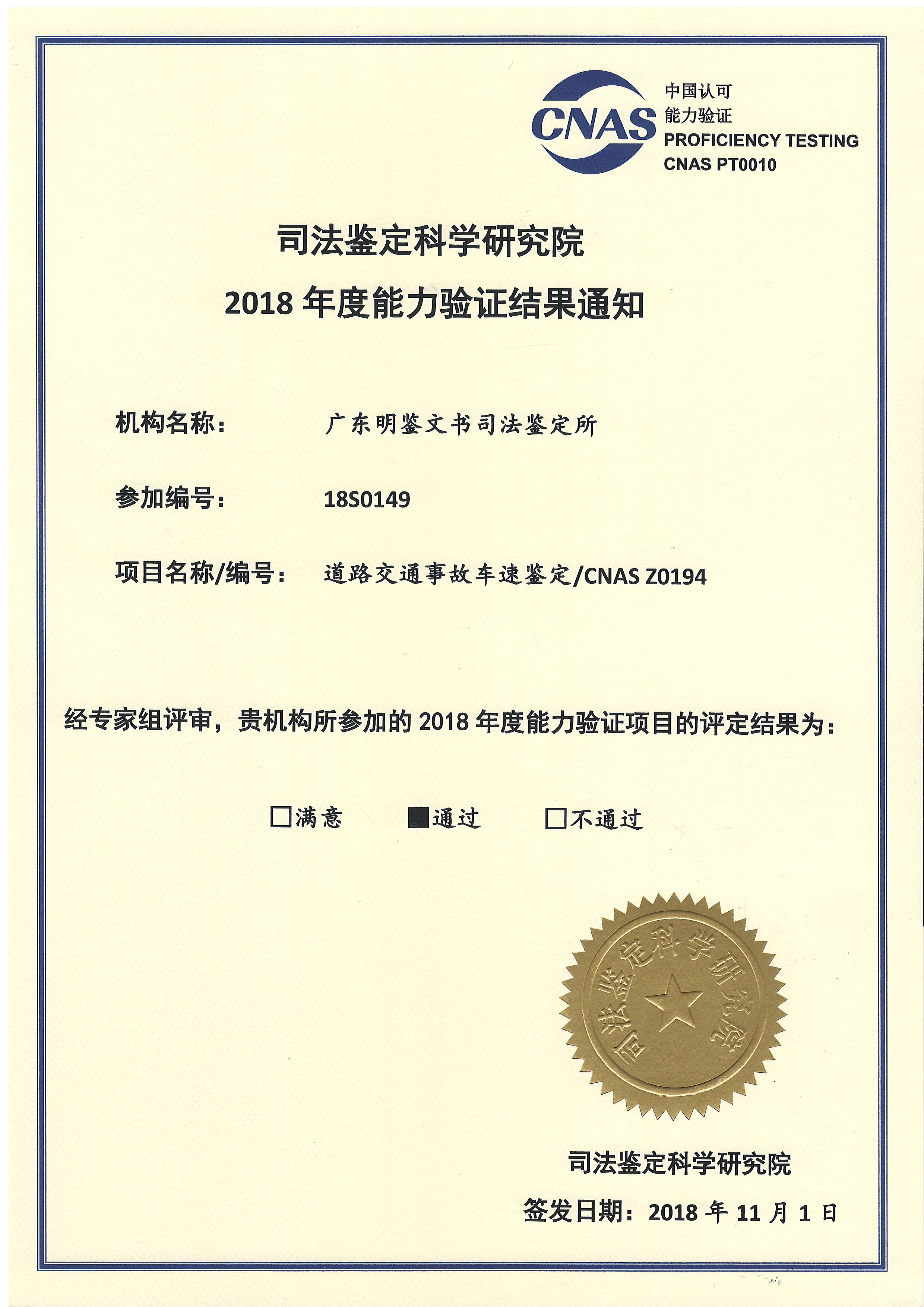 2018年能力验证结果通知(篡改文件鉴定)