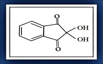 茚三酮又称为苯并戊三酮,是一种烃的含氧二酮衍生物,系统命名:2,2-二羟基二氢化茚-1,3-二酮,微黄色结晶或,茚三酮有毒,特别对水体会产生污染。法医常用茚三酮溶液分析诸如纸张等多孔表面上的潜指纹。手指所分泌的细微汗液聚集于独特的手指纹路表面,也即含有氨基酸的指纹,经过茚三酮处理可以将氨基酸指尖纹路变为可见的紫色。在加热条件及弱酸环境下,氨基酸或肽与茚三酮反应生成紫蓝色化合物及相应的醛。